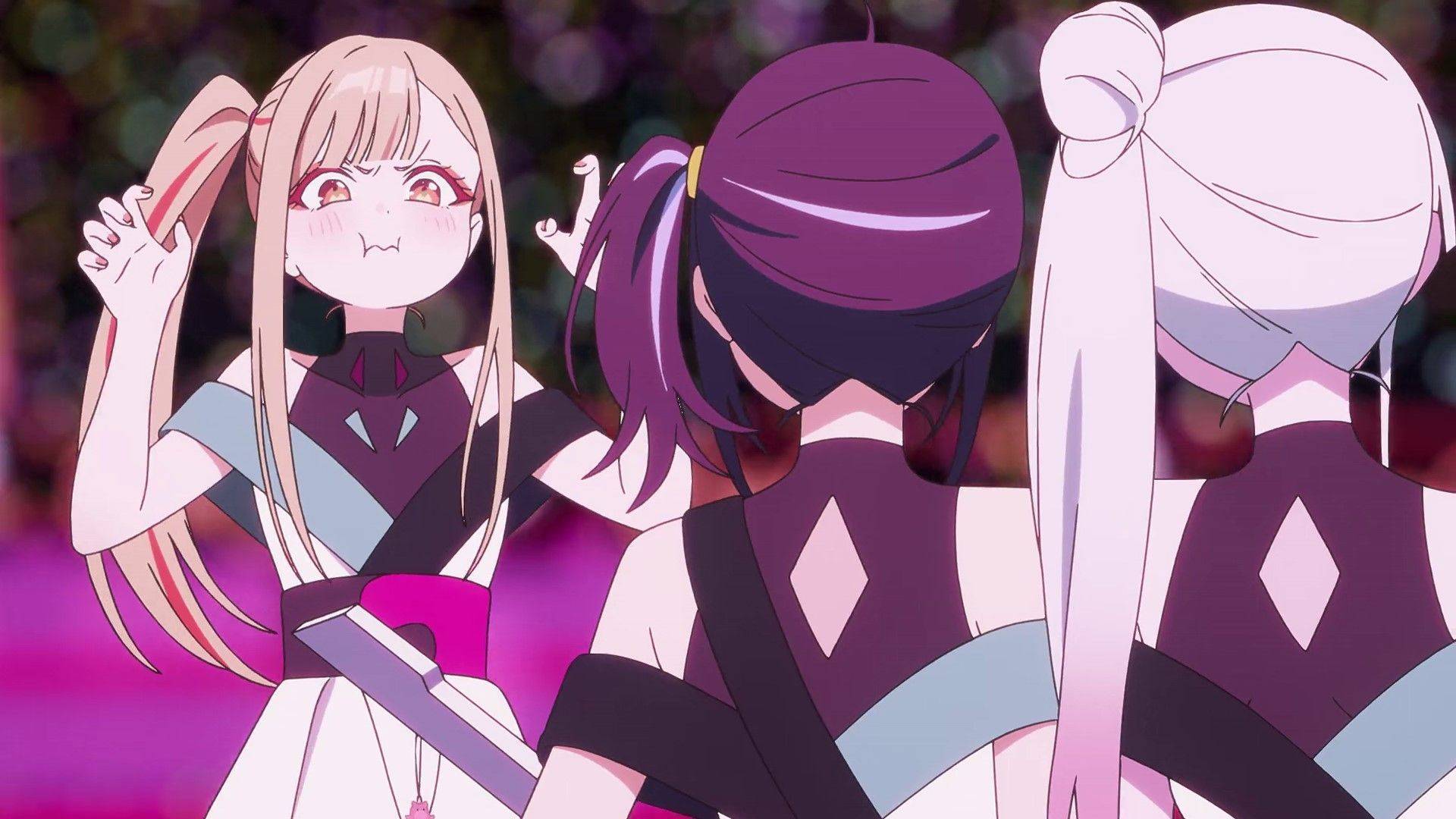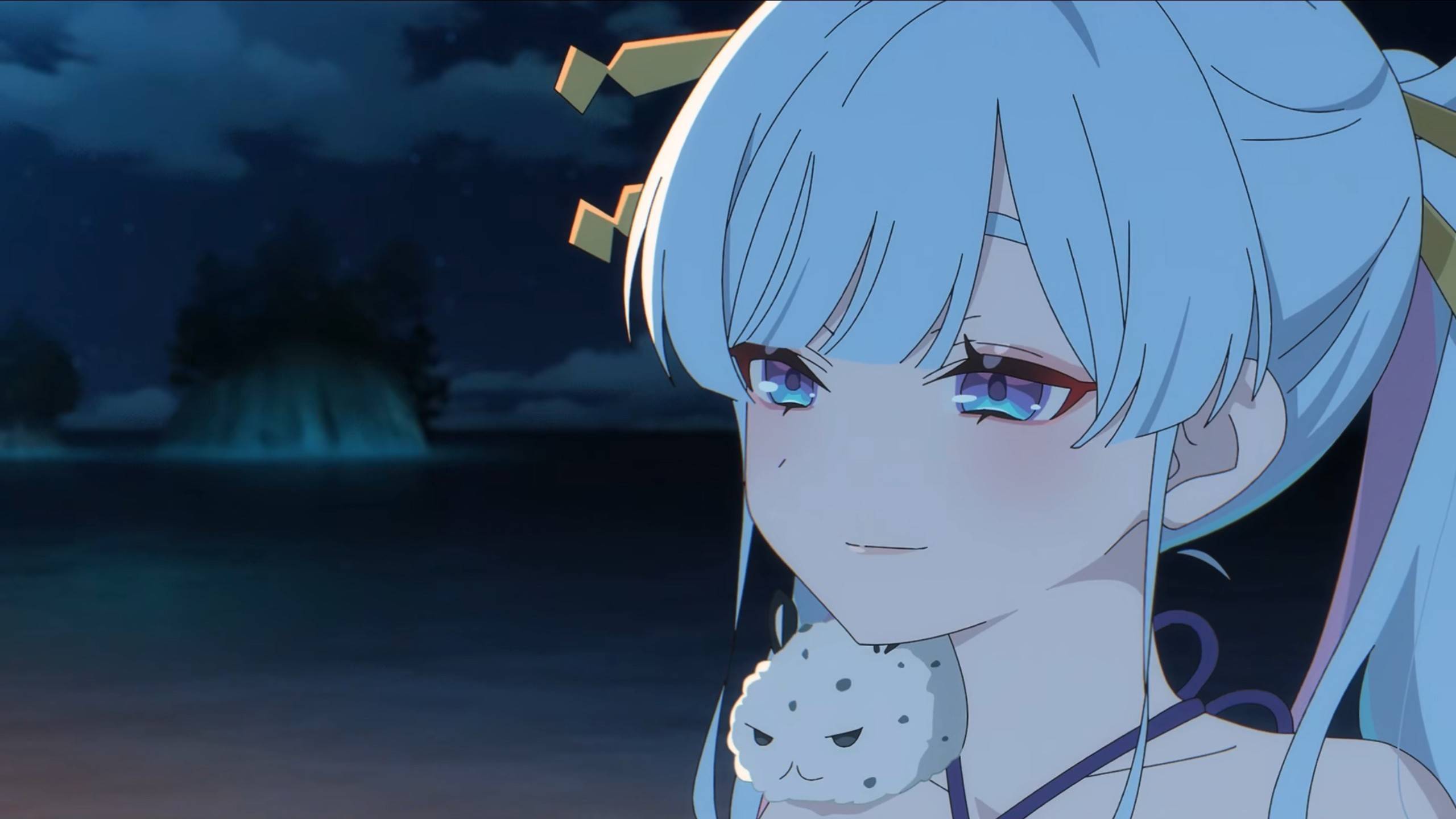 被学业和家庭压力压得喘不过气的彩叶,唯一的精神寄托是虚拟世界「月读」里的偶像月见八千代。辉夜姬的出现像一颗彩色炸弹,炸碎了她按部就班的灰色人生。两人挤在小公寓吃松饼,在虚拟世界组队战斗,甚至以「辉夜×彩叶」组合出道——制作组毫不吝啬地燃烧经费,用炫目的视觉效果和洗脑音乐打造出一场青春盛宴。但就在观众沉浸于这场狂欢时,剧情突然踩下急刹车:辉夜被带回月球后,竟穿越到八千年前,将意识数据化蛰伏于人类文明,最终成为彩叶追捧的虚拟偶像月见八千代。